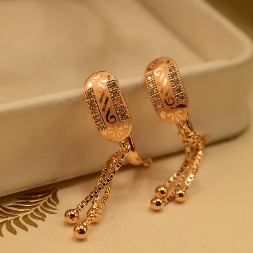 2 Carat Gold Plated Long Earrings, For Girls\Women
