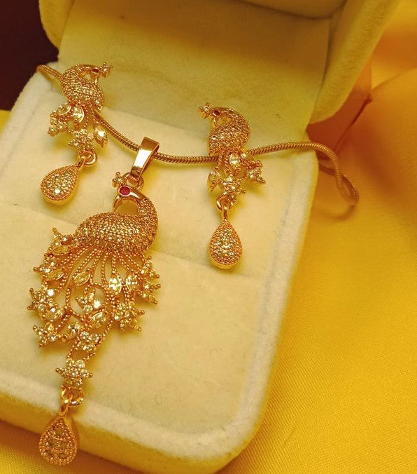 ROYAL TRJ Gold Plated Latest Fancy Stylish Zircon Bali Earrings For Women and Girls A beautiful pendant with chain.