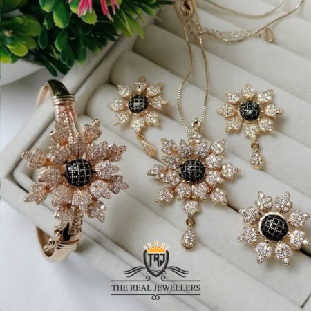 Flower Elegant Golden Unique Design Necklace Set for Girls/Women Necklace Set FOR GIRLS/WOMEN.