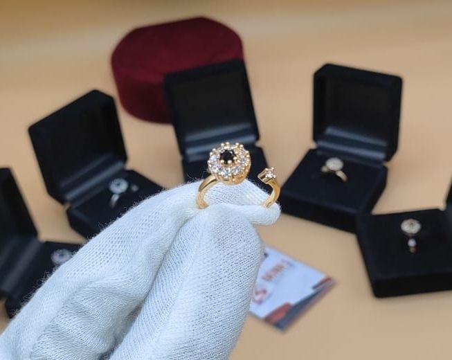 Astonishing Gold Plated With Spinning Black Crystal Stone Ring For Girls/Women