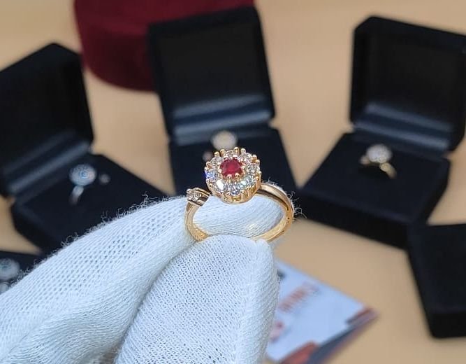 Astonishing Gold Plated With Spinning Red Crystal Stone Ring For Girls/Women